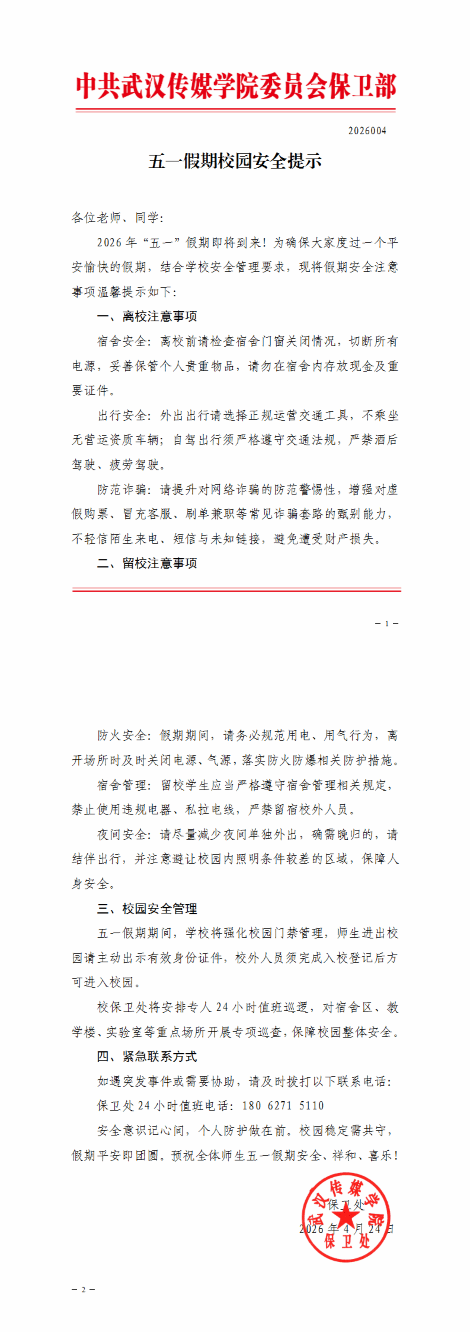 2026年五一假期校园安全提示